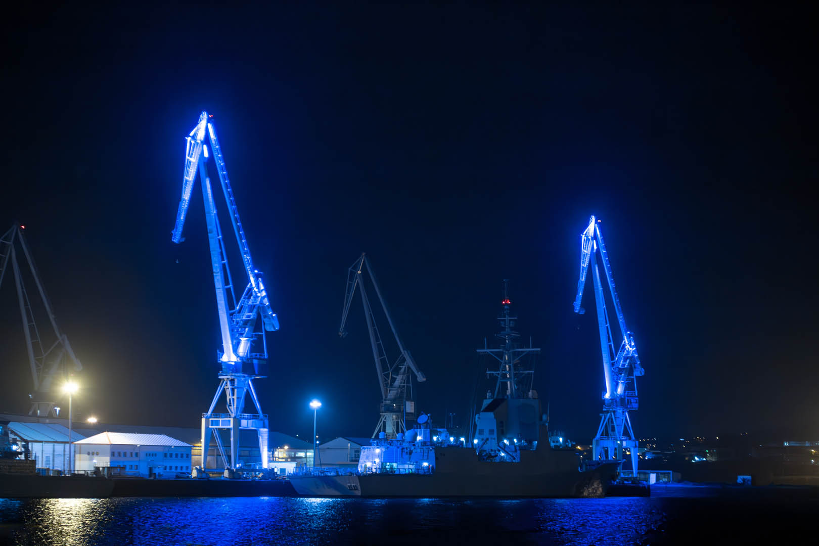 Las grúas y el astillero de Navantia Ferrol han representado a lo largo del tiempo uno de los elementos más distintivos y ampliamente reconocidos por los habitantes de Ferrolterra. Navantia Ferrol Ilumina refleja la fusión entre Navantia y la ciudad, una expresión de homenaje en la que damos valor y nos involucramos en las fechas más importantes.
